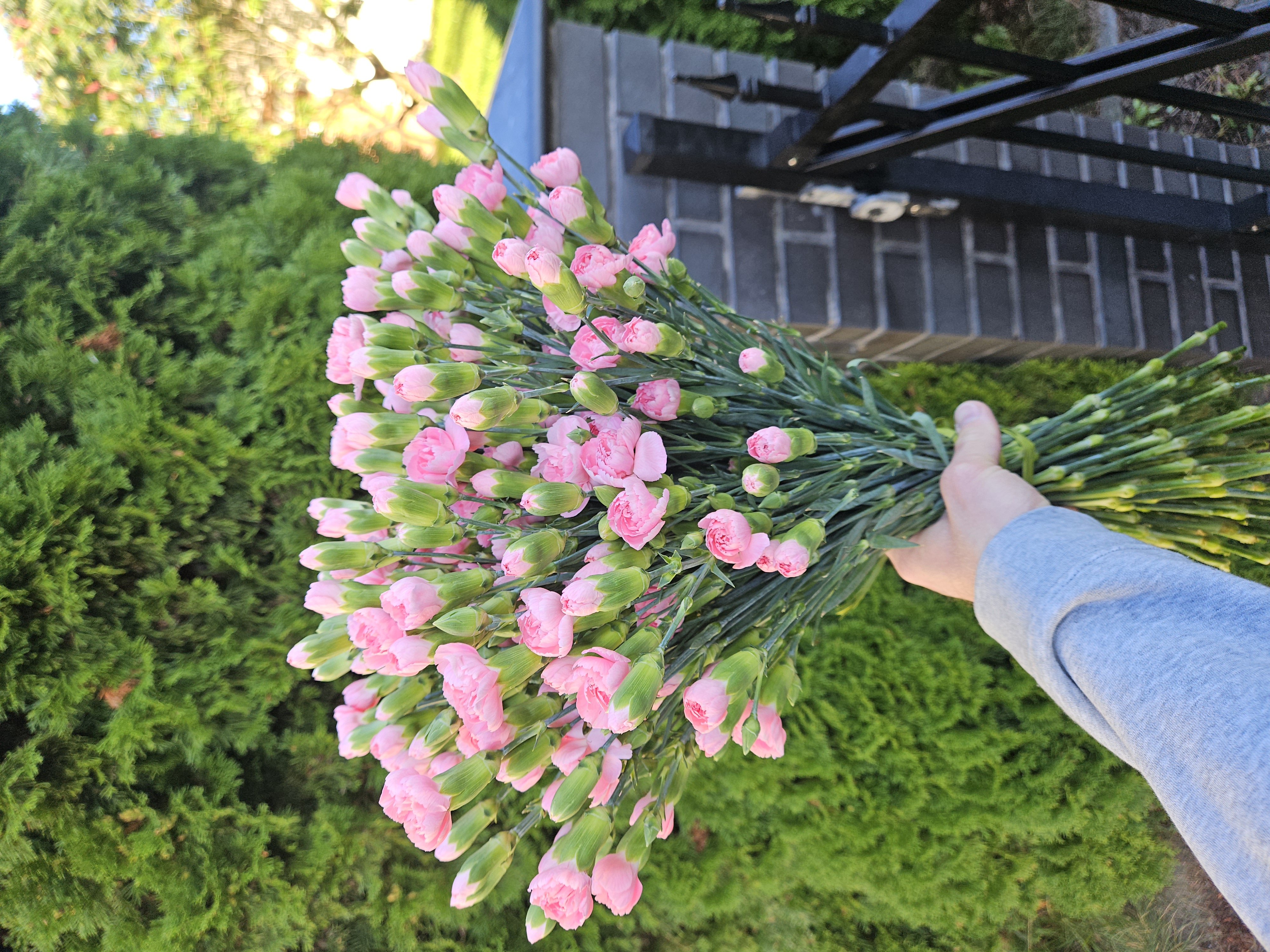 Piękne świeże różowe goździki. Dziękuję i pozdrawiam.