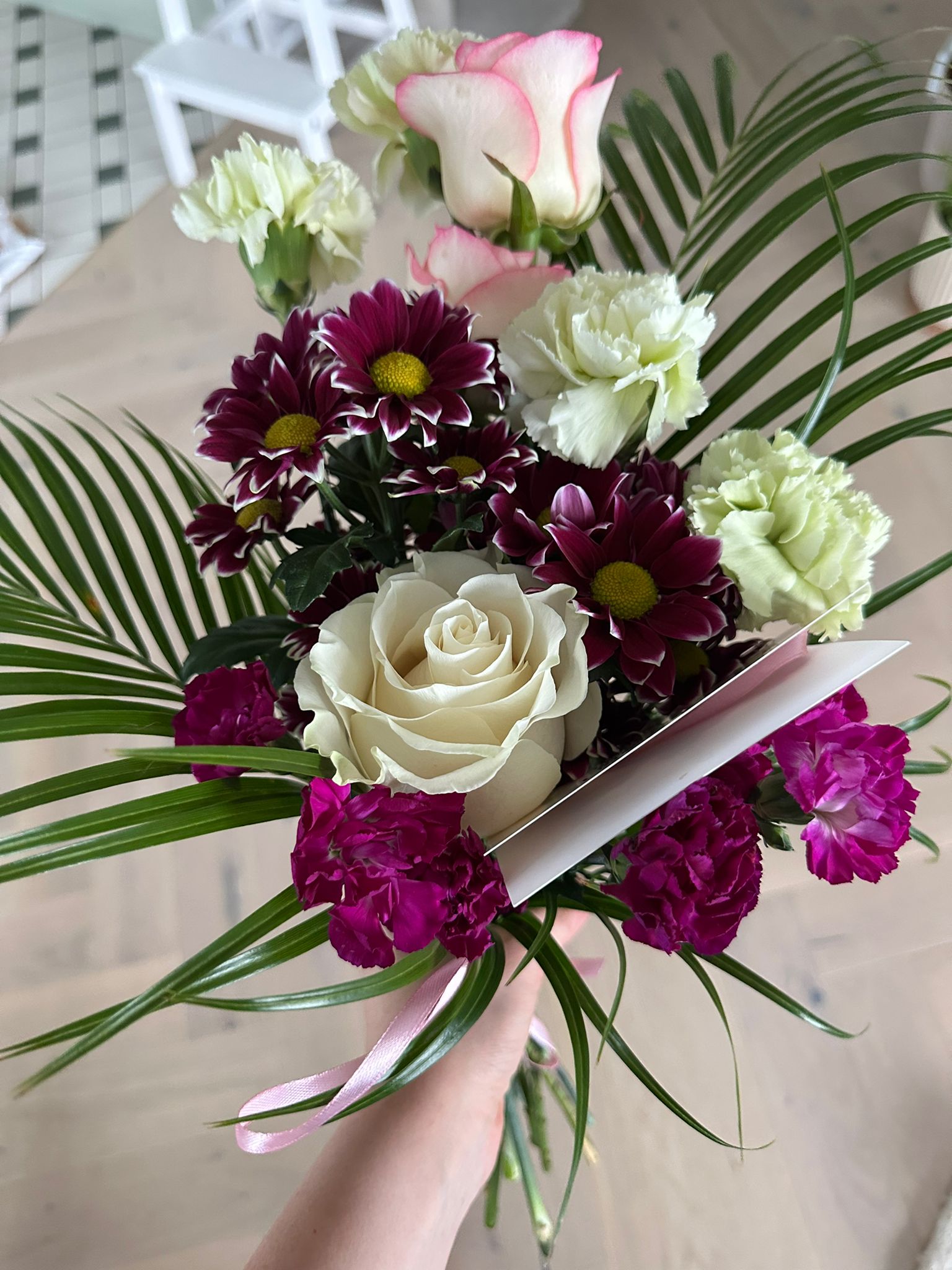 Dostawa na czas, bardzo mila obsluga. Bukiet maly, ale pieknie skomponowany.