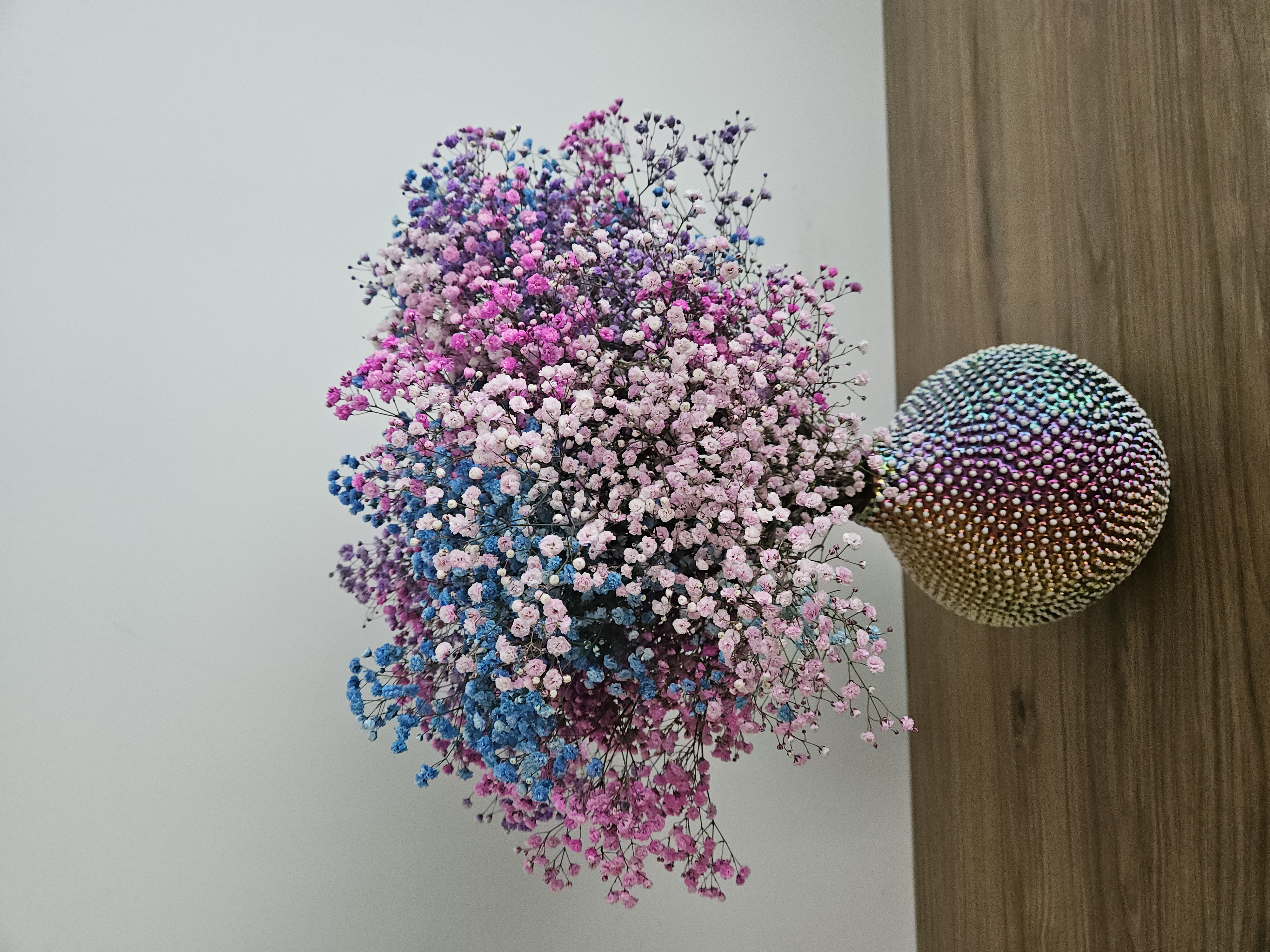 Dostawa w całej Polsce                                      Świeży bukiet z delikatnej gipsówki w pastelowych, tęczowych kolorach. Doskonały jako ozdoba do wnętrza, upominek lub element sesji zdjęciowej.