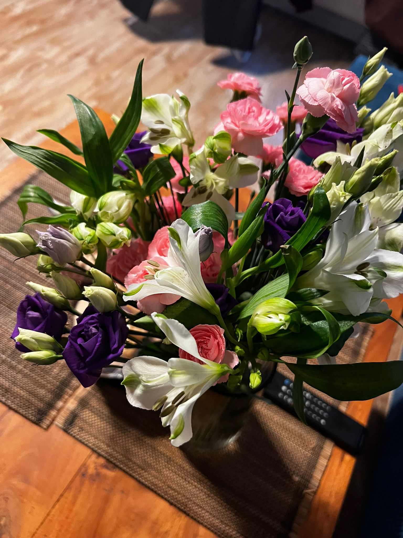Kwiatów nie widziałem na żywo, natomiast z relacji Mamy były starania dostarczenia mimo chwilowej nieobecności adresata oraz wzruszenie z otrzymania przesyłki.