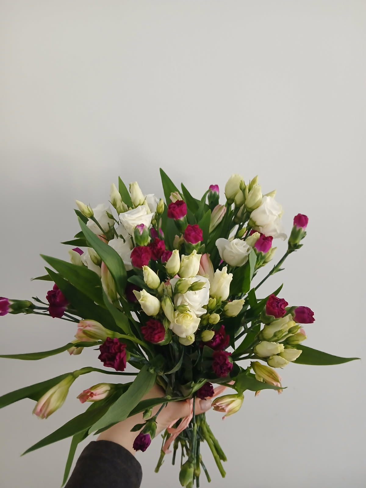 Zawsze świeże kwiaty Miłosny List to bukiet złożony z eustomy, alstromerii i goździka – połączenie delikatności z nutą głębi. Subtelna kolorystyka z mocniejszym akcentem goździka tworzy kompozycję pełną wyrazu.