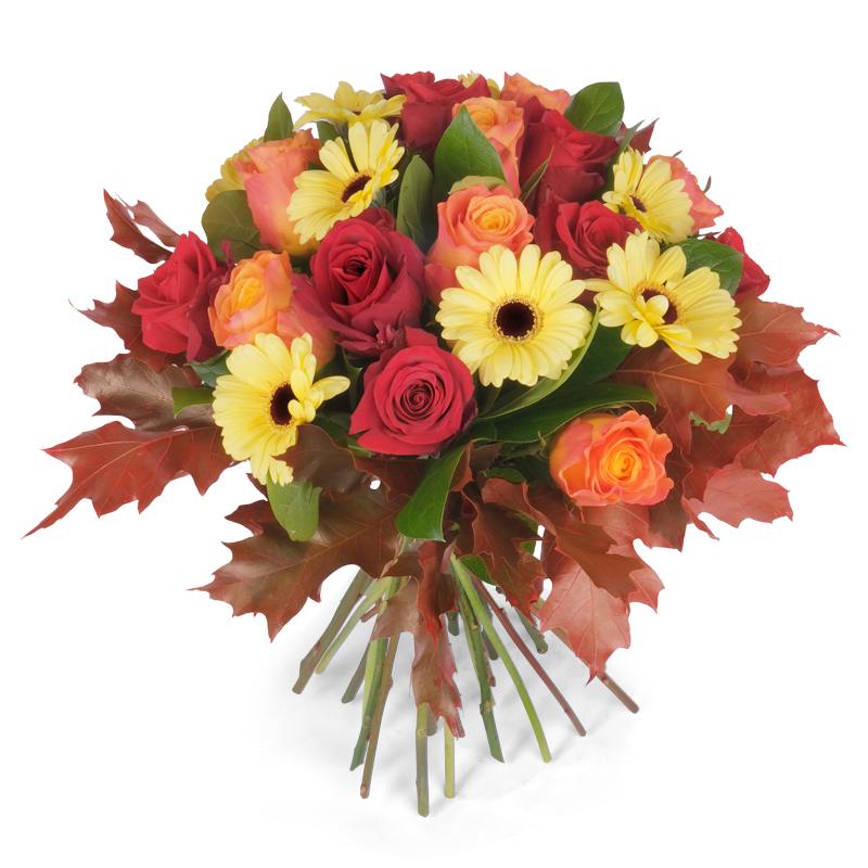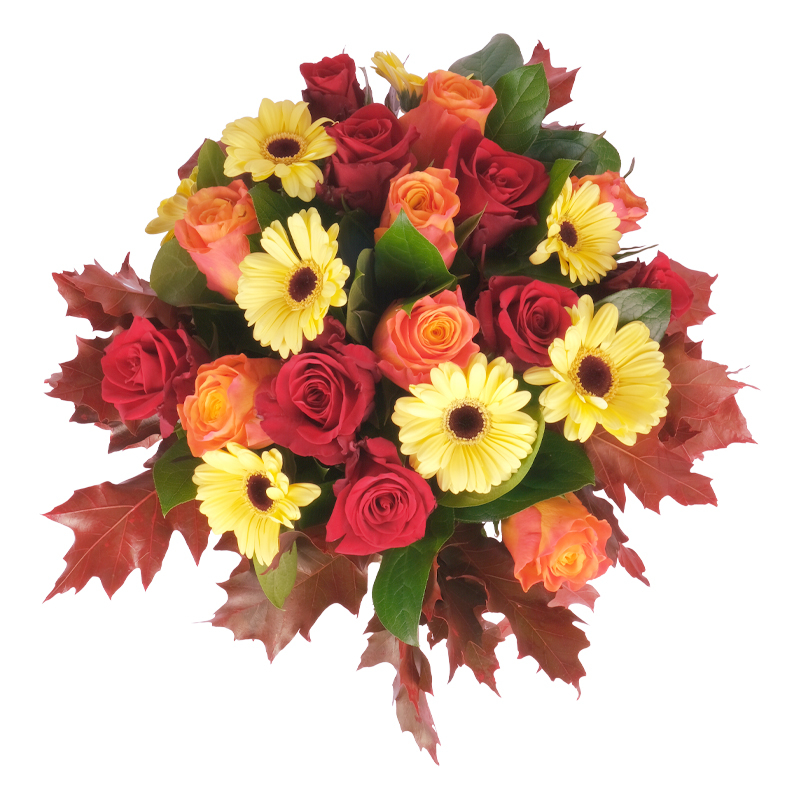Bukiet „Obfita Jesień” to kwintesencja ciepła i elegancji. Połączenie róż i gerber tworzy harmonijną kompozycję pełną uroku. Liście klonu dodają jej wyjątkowego charakteru. To idealny prezent na każdą okazję. Zachwyca swoją naturalnością i stylem.